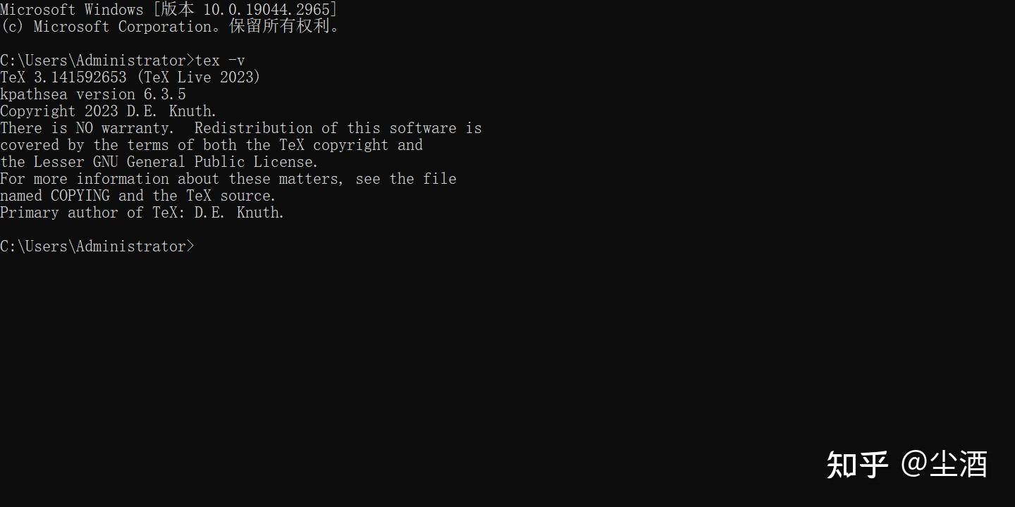 Win + R 打开命令面板:tex -v 查看环境变量是否可用.