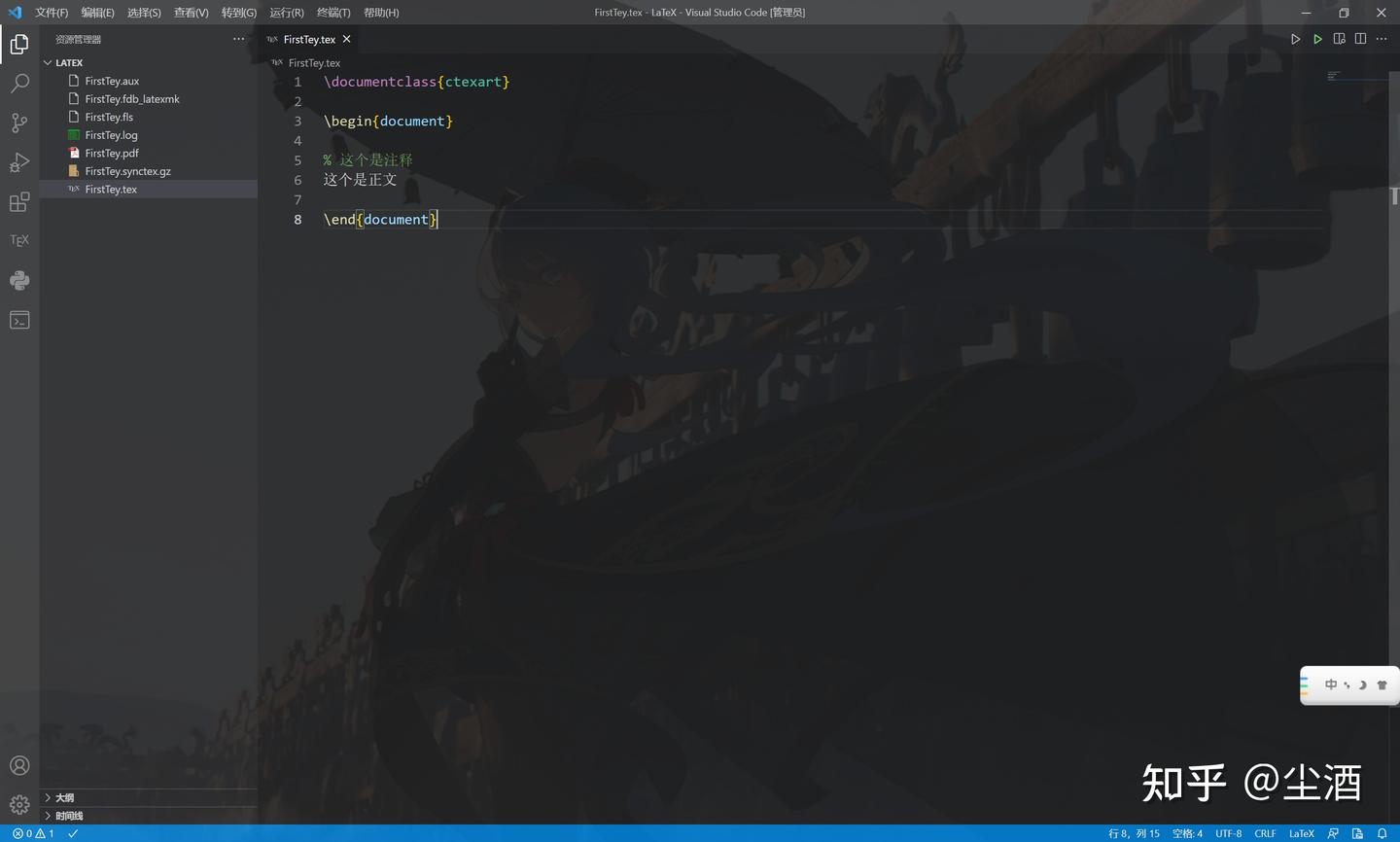 文件拓展名为.tex,随意写一些内容
